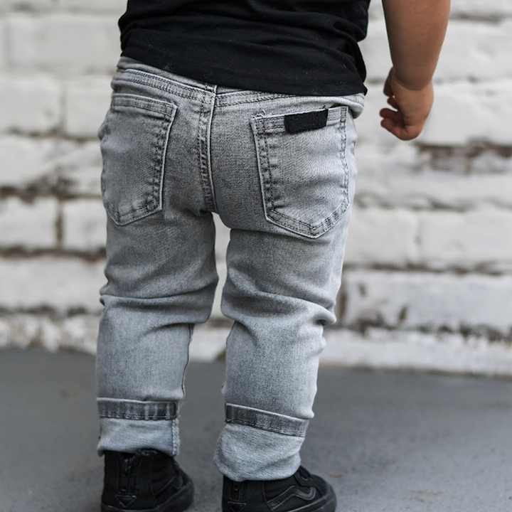 High quality customize elasticated waist loose straight light blue denim jeans for baby kids