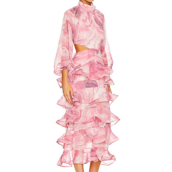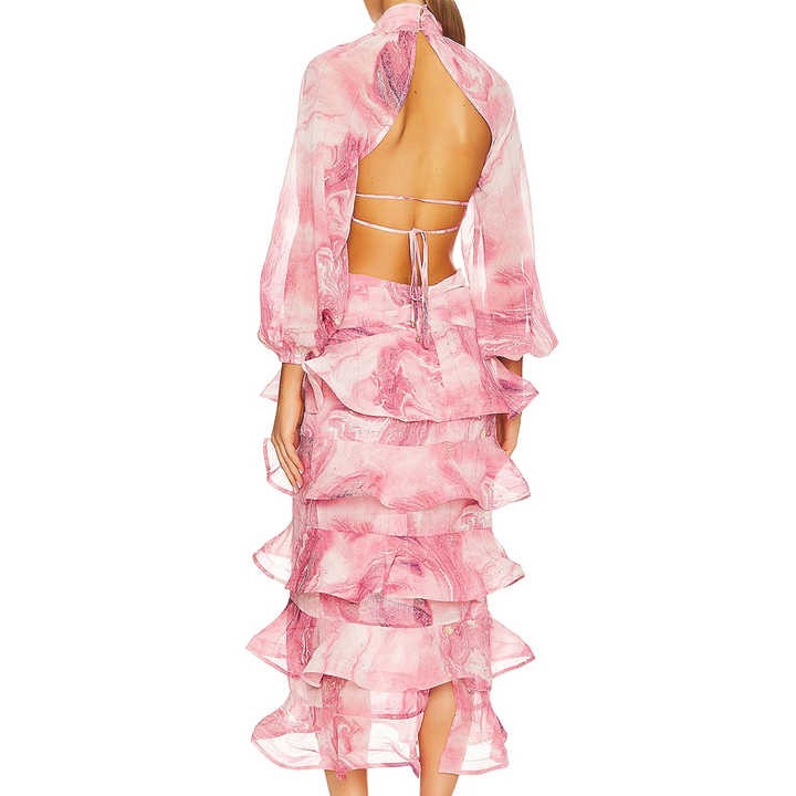 Summer custom sexy casual lady style chiffon long sleeve paper tube and choker women elegant floral dress