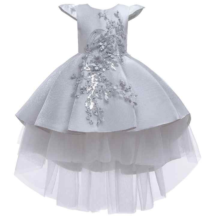 Western style tailed girl wedding dress elegant crew neck baby girls dress design kid beaded dresses for girls of 10 year old