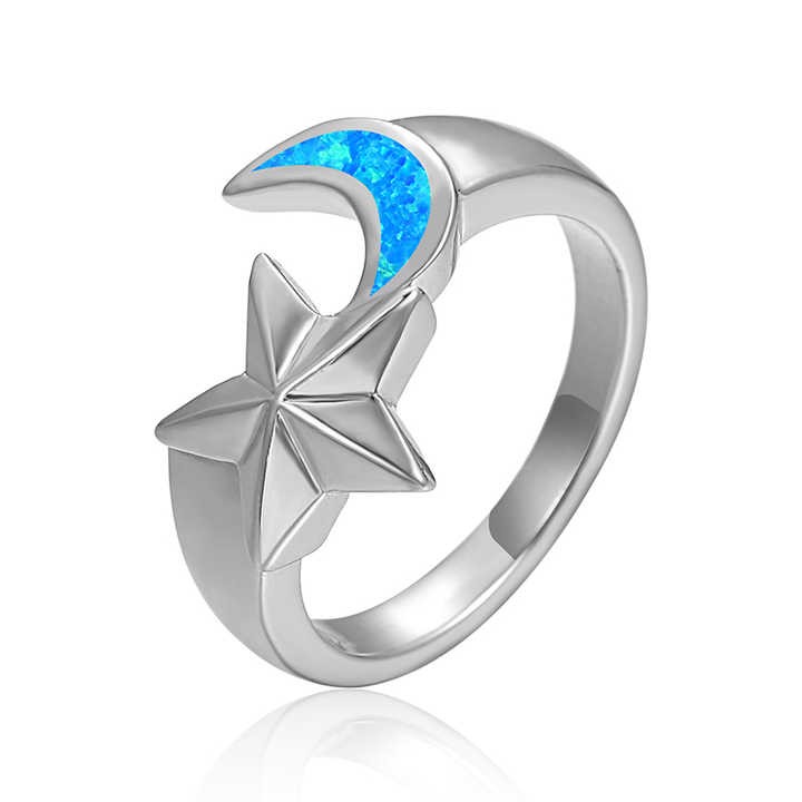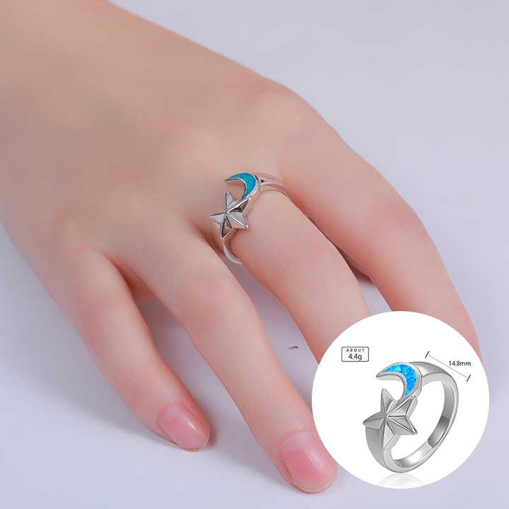 XYOP Hot selling 925 sterling silver synthetic opal ring wholesale for women gift Personality Star Moon design jewelry